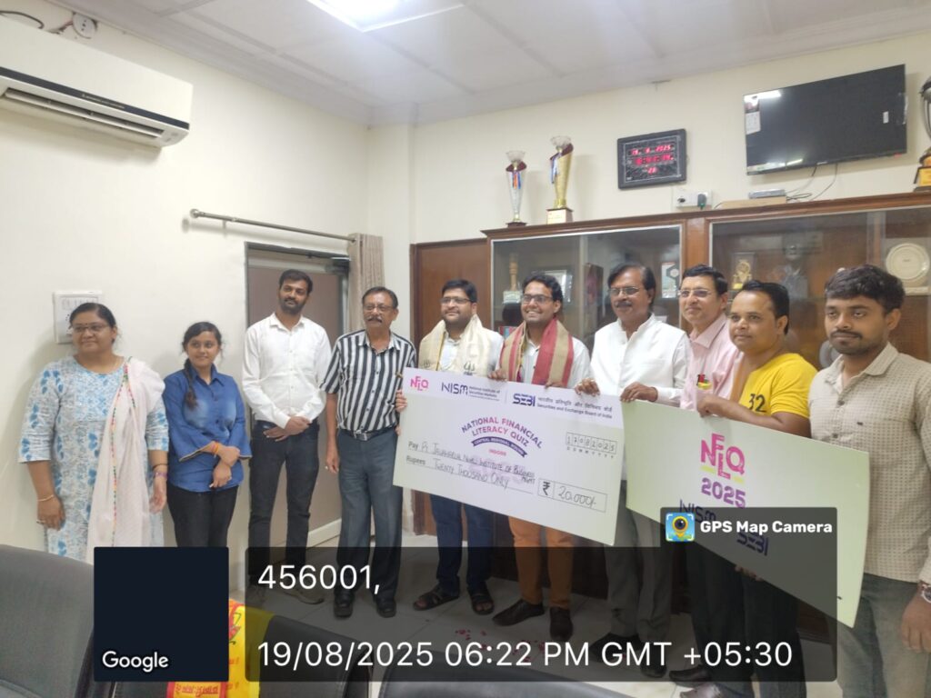 in the NISM- NFLQ Central Zone Round recently held at SIUS Campus Indore.The Team consisting of Faculty Mentor Prof Dr Dharmendra Mehta, Rohit Bhatt, Er. Aditya Pathak showcased the talent, confidence and decision making skills in multiple rounds of NFLQ.The Journey to this 3rd Position not only made them earn