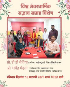 Campus Activities Workshops Events By JNIBM World Interfaith Harmony Week Celebrations at Ujjain’s Community Radio Dastak by Prof Dr Dharmendra Mehta Director FMS PtJNIBM VU Ujjain Prof Dr D.D.Bedia Director IQAC VU Ujjain